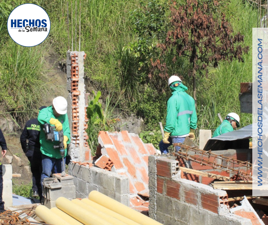 Demuelen cinco construcciones ilegales en Altavista y recuperan espacio público de valor ecológico en Medellín